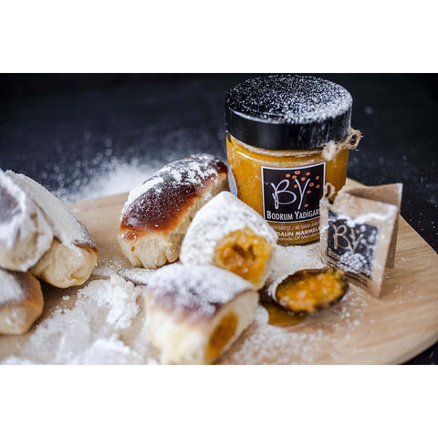 Bodrum mandalinlerinin kabuğu ve suyundan hazırlanan bu marmelat, şeker ilavesi yapılmadan doğal meyve şekeri ile üretilmiştir. Mandalin kabuğunun yoğun aroması ve karakteristik tadı, kahvaltı sofralarınıza farklı bir deneyim sunar. El yapımı, küçük partiler halinde özenle hazırlanmıştır.