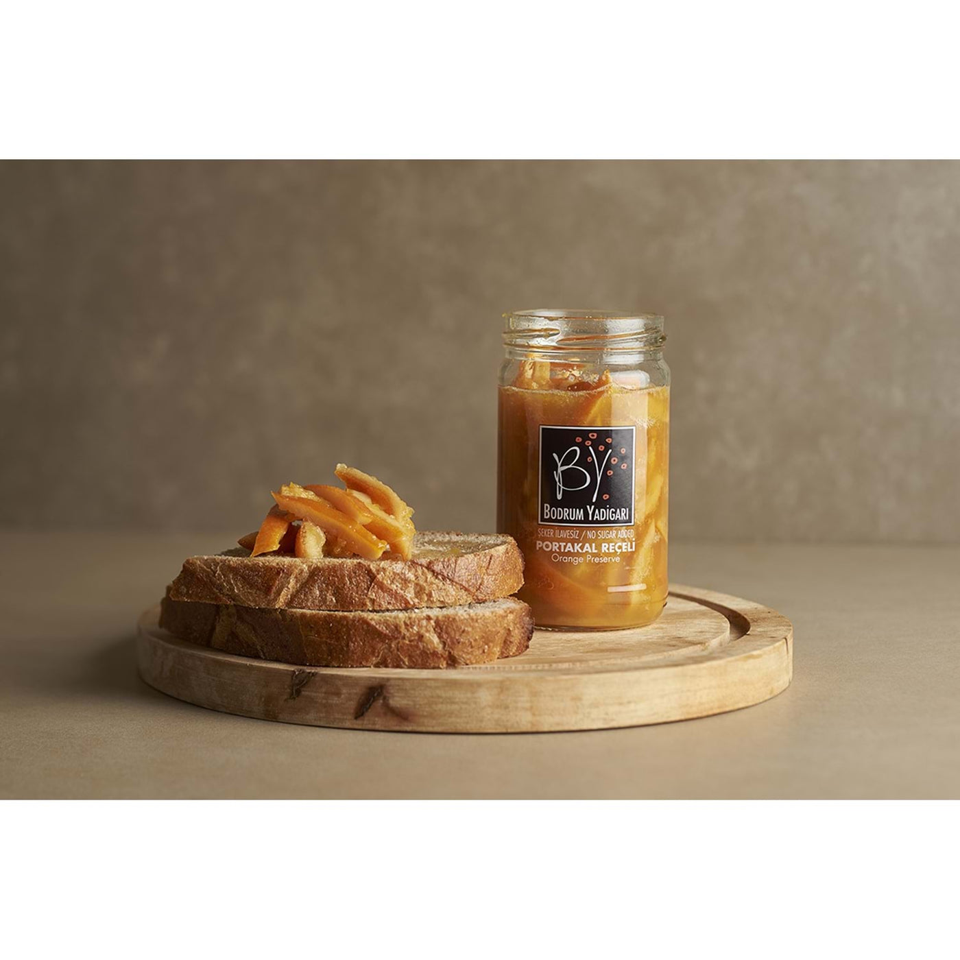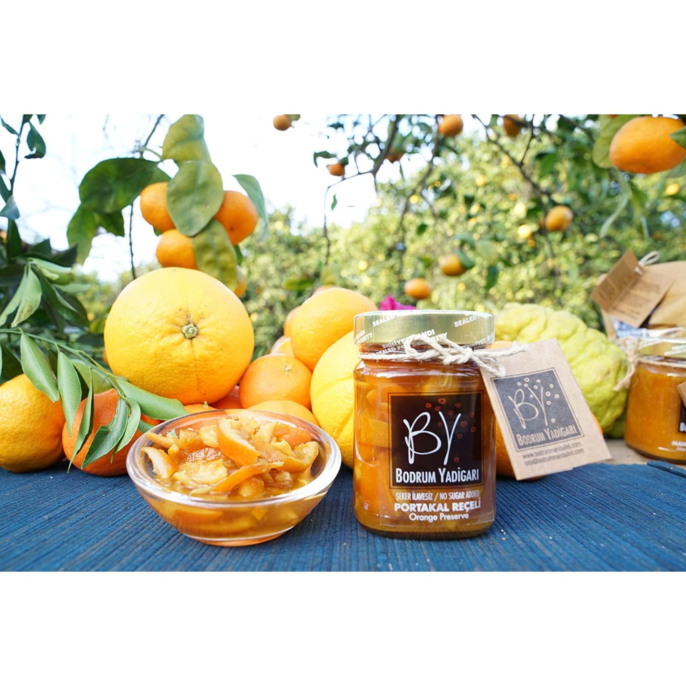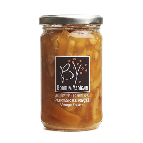 Taze sıkılmış Bodrum portakallarından hazırlanan bu reçel, şeker ilavesi yapılmadan tamamen doğal meyve şekeri ile üretilmiştir. Portakalın tatlı ve aromatik lezzeti, geleneksel tariflerle buluşarak sofranıza taşınır. Küçük partiler halinde, özenle hazırlanmıştır.